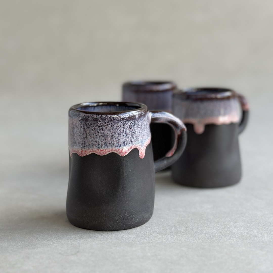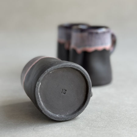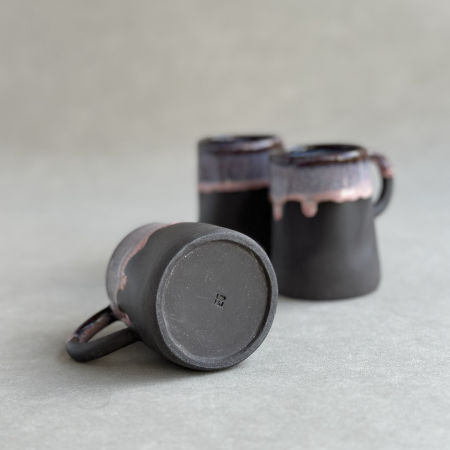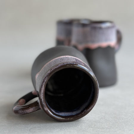 W środku pokryty szkliwem transparentnym. Na zewnątrz - płynącym, wielobarwnym różem.