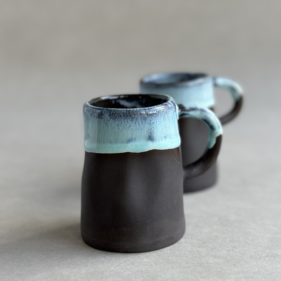 W środku pokryty szkliwem transparentnym. Na zewnątrz - płynącym, turkusowym.