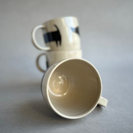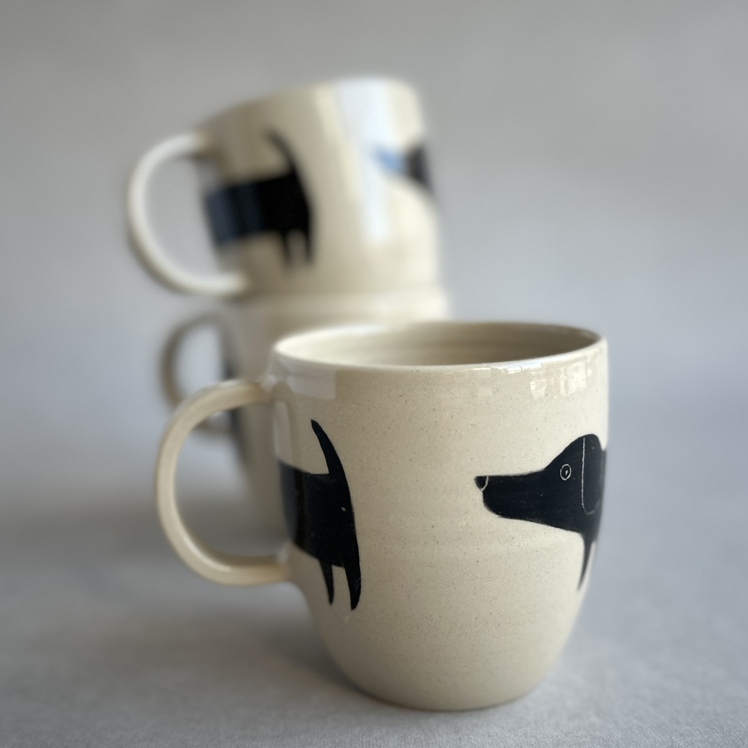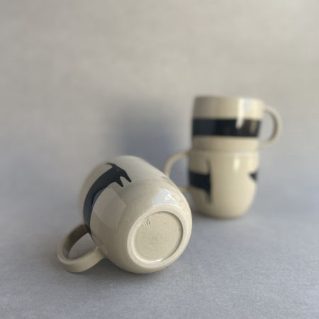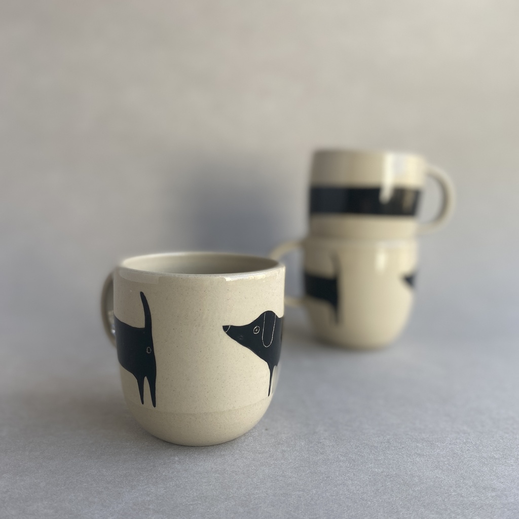 Wytoczony z jasnej gliny kubek ozdobiony uroczym, czarnym Jamnikiem. Jamnik jest bardzo dobrze dobrze ułożony, mniej więcej w połowie kubka. Ponieważ to jamnik, zajmuje sobą prawie cały obwód. Z radością potowarzyszy Ci przy kawie lub herbacie. Każdy kubek to trochę inny jamnik.