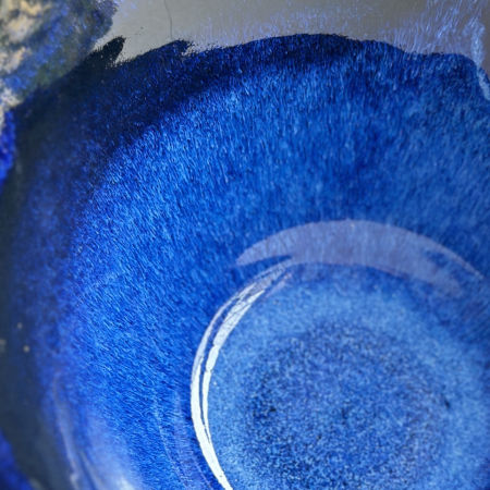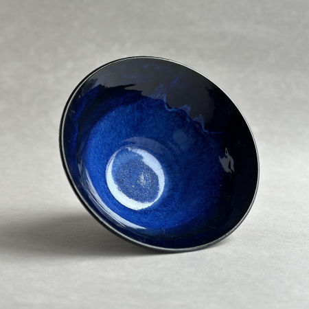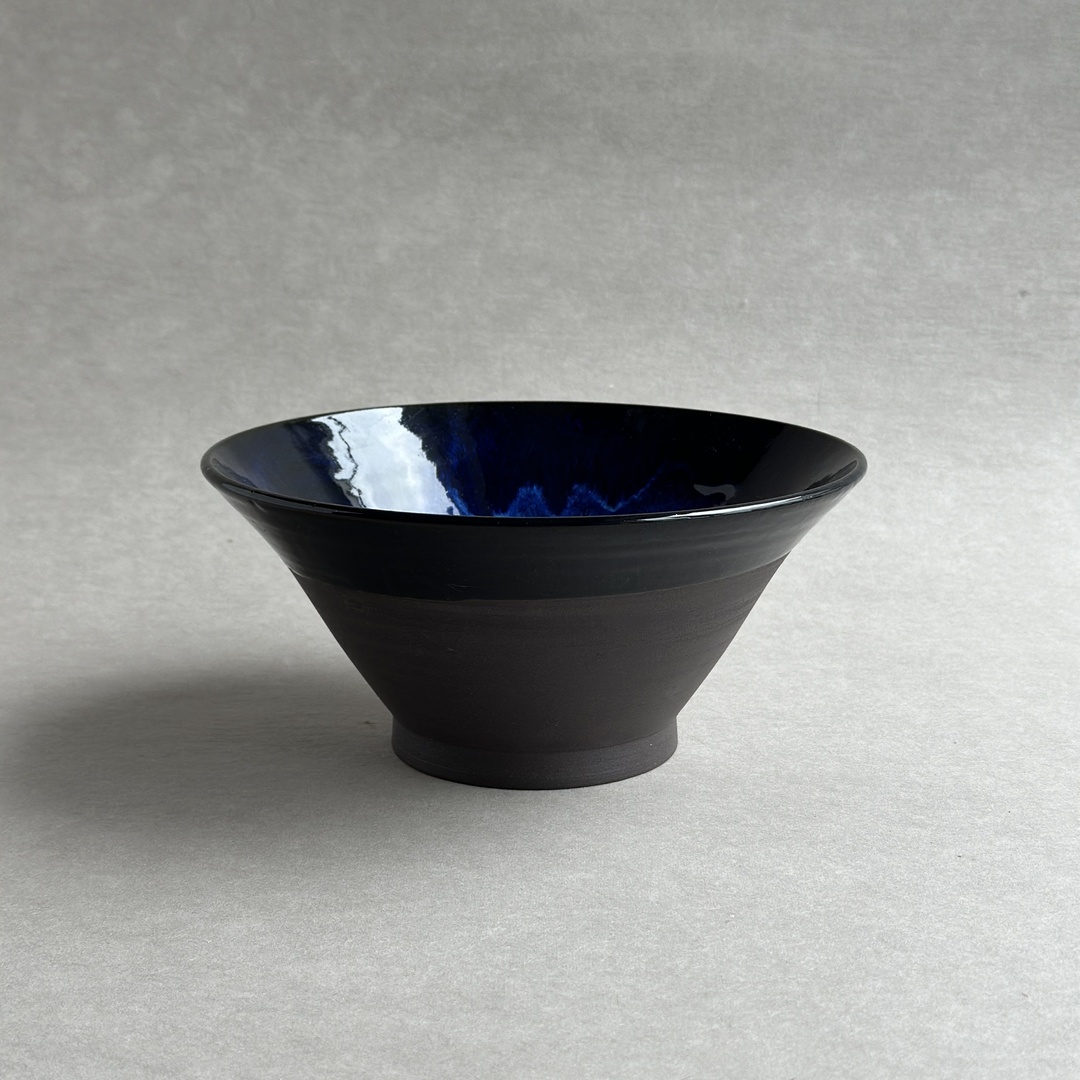 Wytoczona z ciemnoszarej gliny micha, pokryta wielobarwnym granatowo-błękitnym szkliwem. Miska na solidną porcję ramenu, lub innych kluchów.