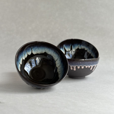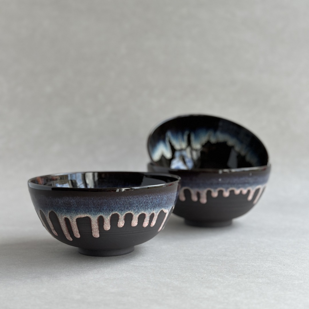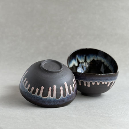 Wytoczona z ciemnoszarej gliny miska, pokryta płynącym miodowo-różowym szkliwem. Idealna na solidną porcję zupy czy owsianki.