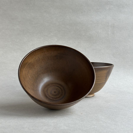 Wytoczona z ciemnoszarej gliny miska, pokryta satynowym, opalizującym ciemnobrązowym szkliwem. Miski typu tayoudon mają uniwersalny i wszechstronny charakter - nadają się zarówno na ramen, inne zupy jak i dania z ryżu czy makaronu.
